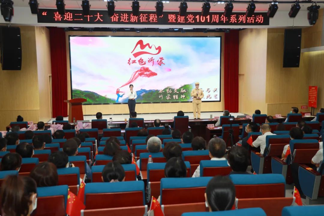 聆聽藝術(shù)黨課向黨的生日致敬。醫(yī)院特邀沂蒙精神宣講團(tuán)為全體黨員干部帶來“水乳交融,生死與共”沂蒙精神藝術(shù)黨課。宣講團(tuán)通過話劇的形式,以黨群心連心、擁軍勇支前、日月?lián)Q新天、時(shí)代譜新篇四個(gè)篇章,全方位呈現(xiàn)了沂蒙濃濃的紅色基因和厚重的時(shí)代價(jià)值。