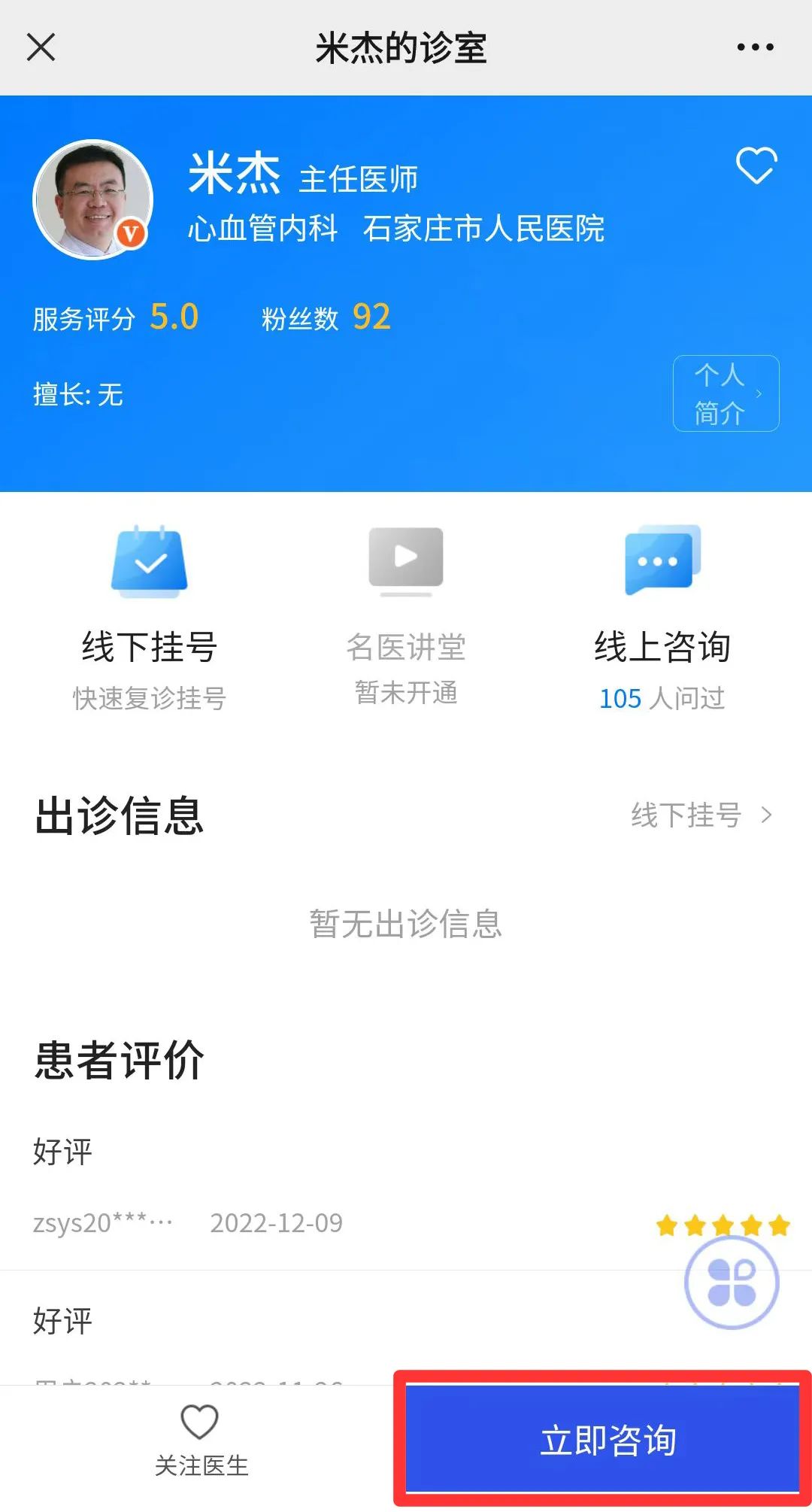 進(jìn)入醫(yī)生主頁(yè)