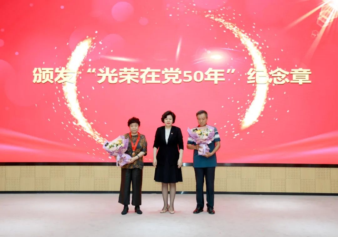 黨委書記曹琴英為“光榮在黨50年”黨員代表頒發(fā)紀念章