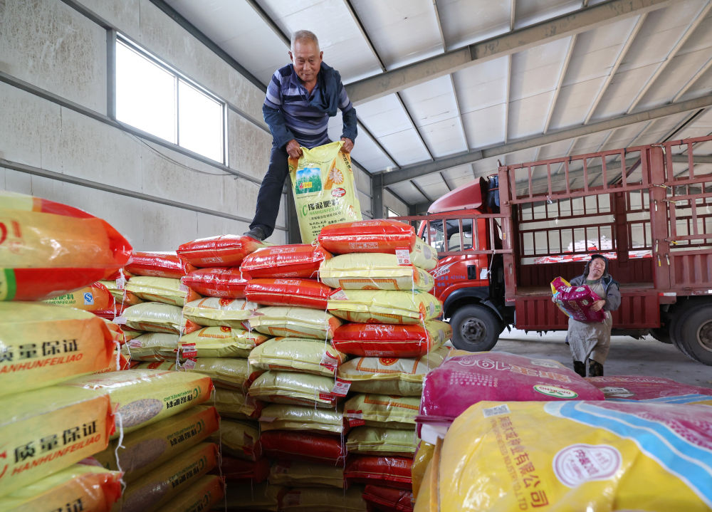 6月3日,河北省晉州市一家農(nóng)資銷售公司的工人在庫房碼放農(nóng)資。新華社記者 楊世堯 攝