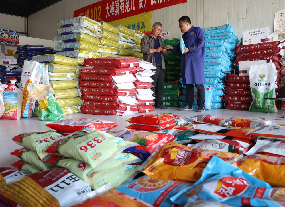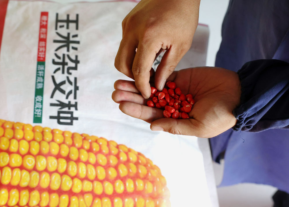 6月3日,在河北省晉州市一家種子銷售站,工作人員展示玉米種子。新華社記者 楊世堯 攝