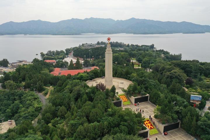 這是河北省石家莊市平山縣西柏坡紀(jì)念塔(9月23日攝,無(wú)人機(jī)照片)。新華社記者 牟宇 攝