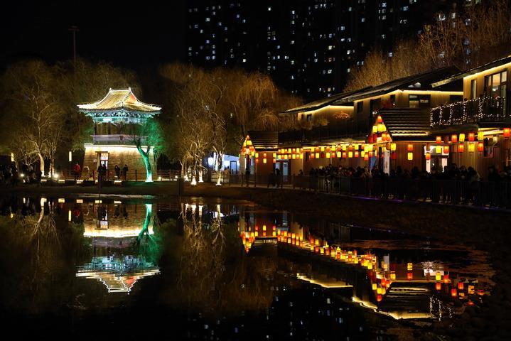 這是2月1日拍攝的河北省石家莊市欒城區(qū)古欒水鎮(zhèn)夜景。新華社記者 駱學(xué)峰 攝