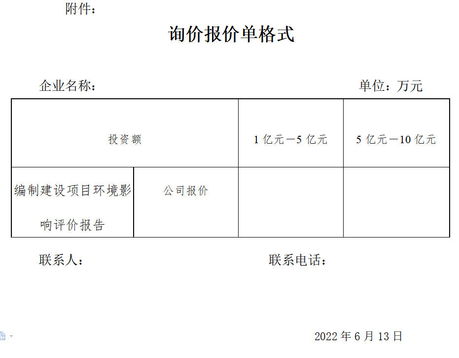 說明:本公告只為征集環(huán)境影響評(píng)價(jià)報(bào)告咨詢費(fèi)詢價(jià)使用。