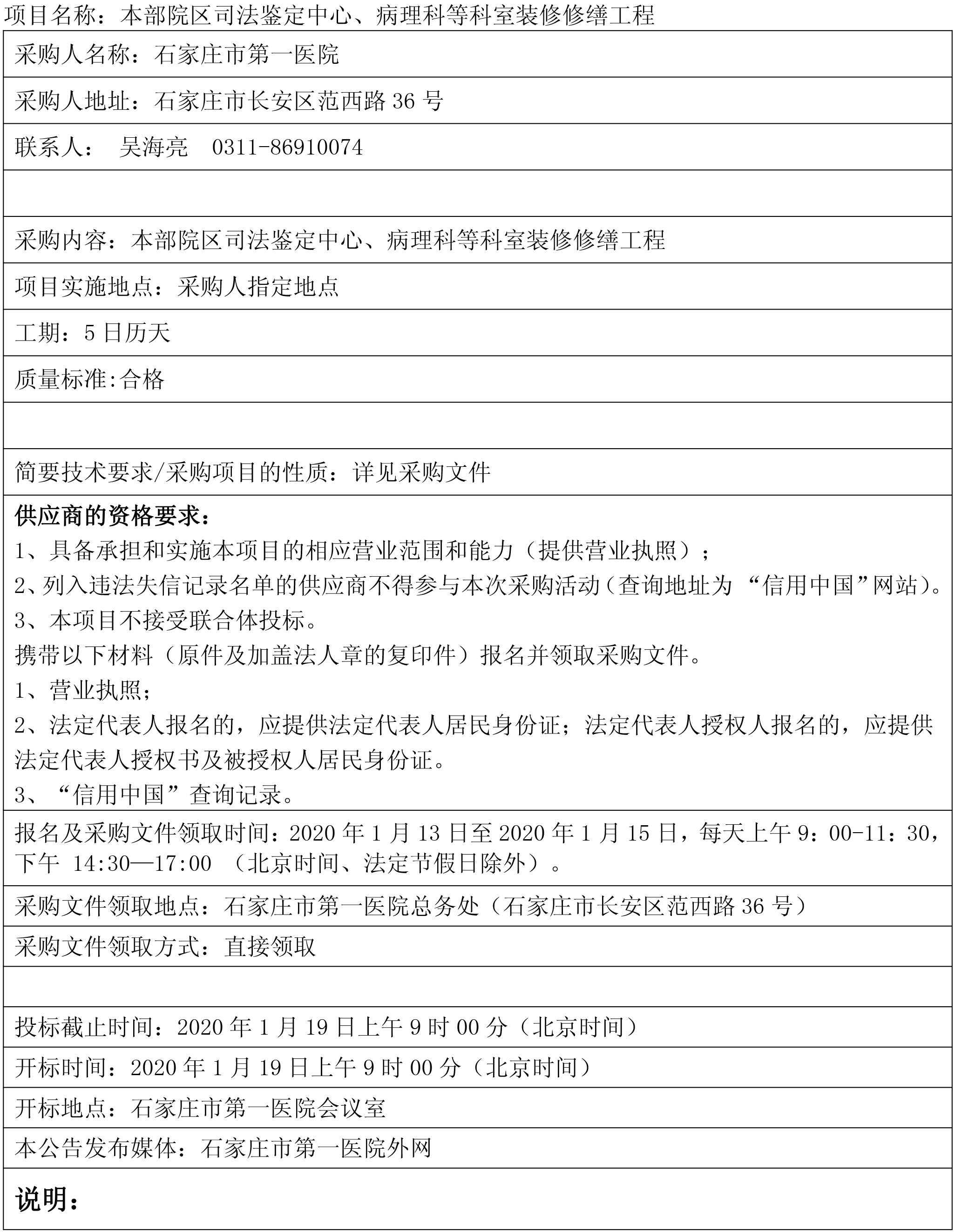 本部院區(qū)司法鑒定中心、病理科等科室裝修修繕工程采購(gòu)公告