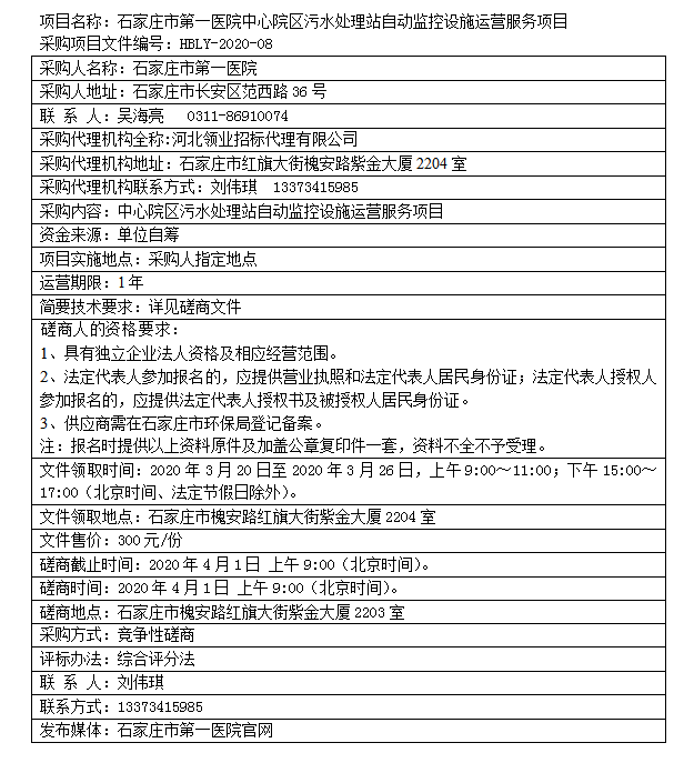 中心院區(qū)污水處理站自動監(jiān)控設施運營服務磋商公告