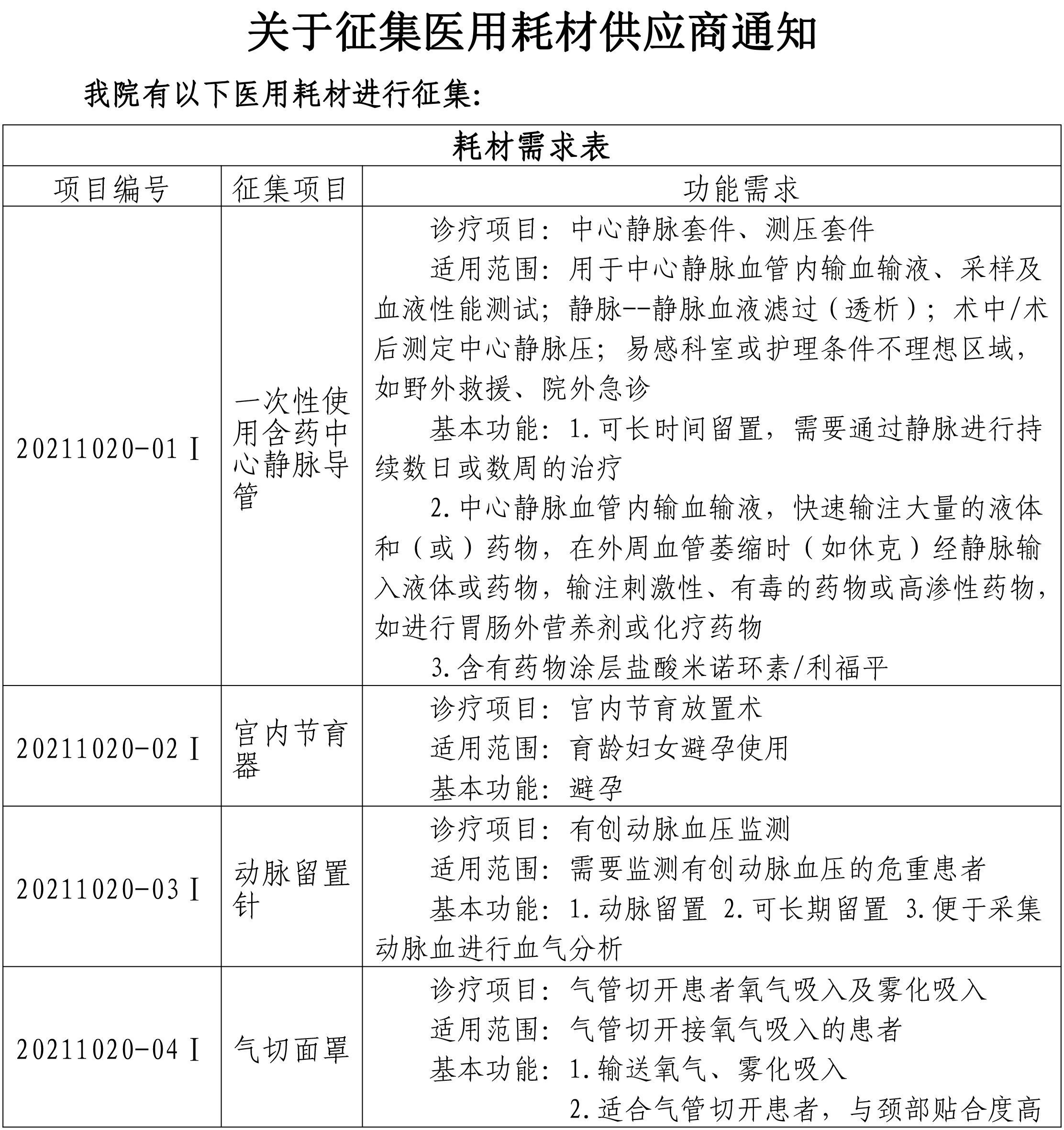 關(guān)于征集醫(yī)用耗材供應(yīng)商通知