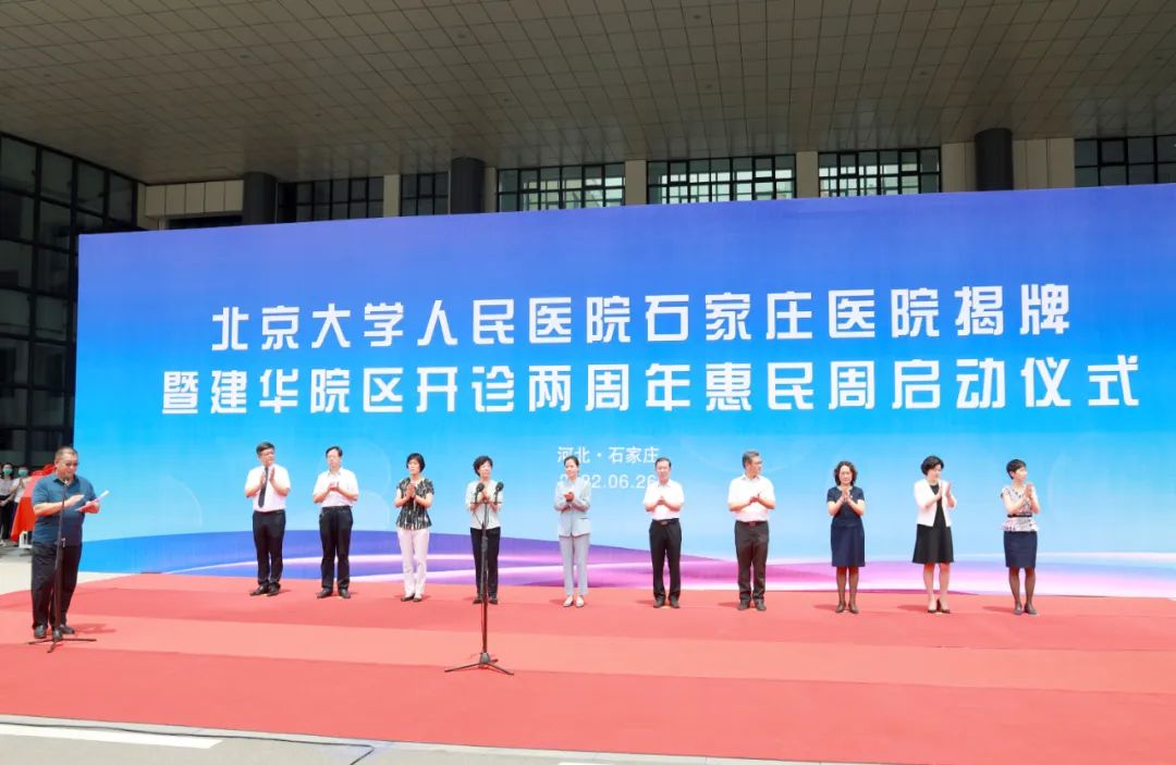 6月26日,市人民醫(yī)院舉行北京大學(xué)人民醫(yī)院石家莊醫(yī)院揭牌暨建華院區(qū)開診兩周年惠民周啟動(dòng)儀式,石家莊市政府副市長張峰珍,河北省衛(wèi)健委二級(jí)巡視員范素文、規(guī)劃發(fā)展和信息化處處長馬哲、醫(yī)政醫(yī)管處副處長丁瑞,石家莊市衛(wèi)健委主任崔蕓、二級(jí)調(diào)研員王金海,石家莊市發(fā)改委二級(jí)調(diào)研員安冬梅,北京大學(xué)人民醫(yī)院石家莊醫(yī)院執(zhí)行院長王晶桐,醫(yī)院黨委書記曹琴英、院長趙玉斌及醫(yī)院領(lǐng)導(dǎo)班子,臨床、醫(yī)技、行政職能科室負(fù)責(zé)人參加。