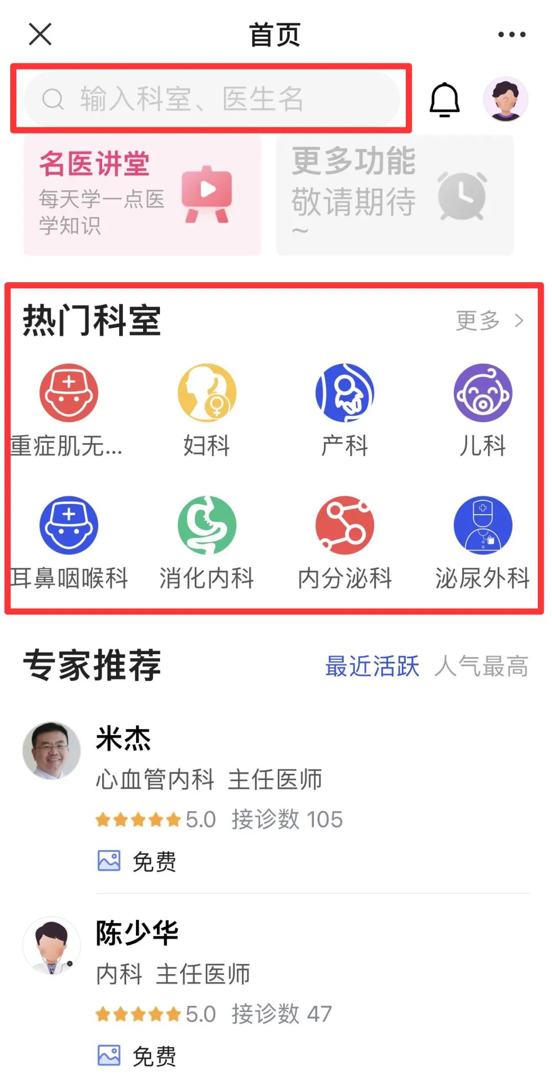 搜索醫(yī)生或科室