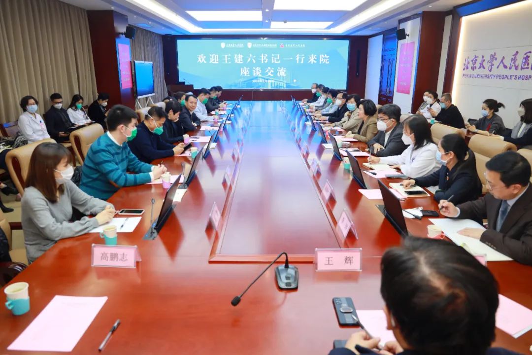 1月15日,北京大學人民醫(yī)院黨委書記王建六、紀委副書記姜冠潮、石家莊醫(yī)院執(zhí)行院長王晶桐一行9人來院調(diào)研座談。市衛(wèi)健委黨組書記、主任崔蕓,二級調(diào)研員王金海,市人民醫(yī)院黨委書記曹琴英、院長趙玉斌及部分領導班子成員,部分臨床、職能科室負責人等參加。座談會由曹琴英書記主持。