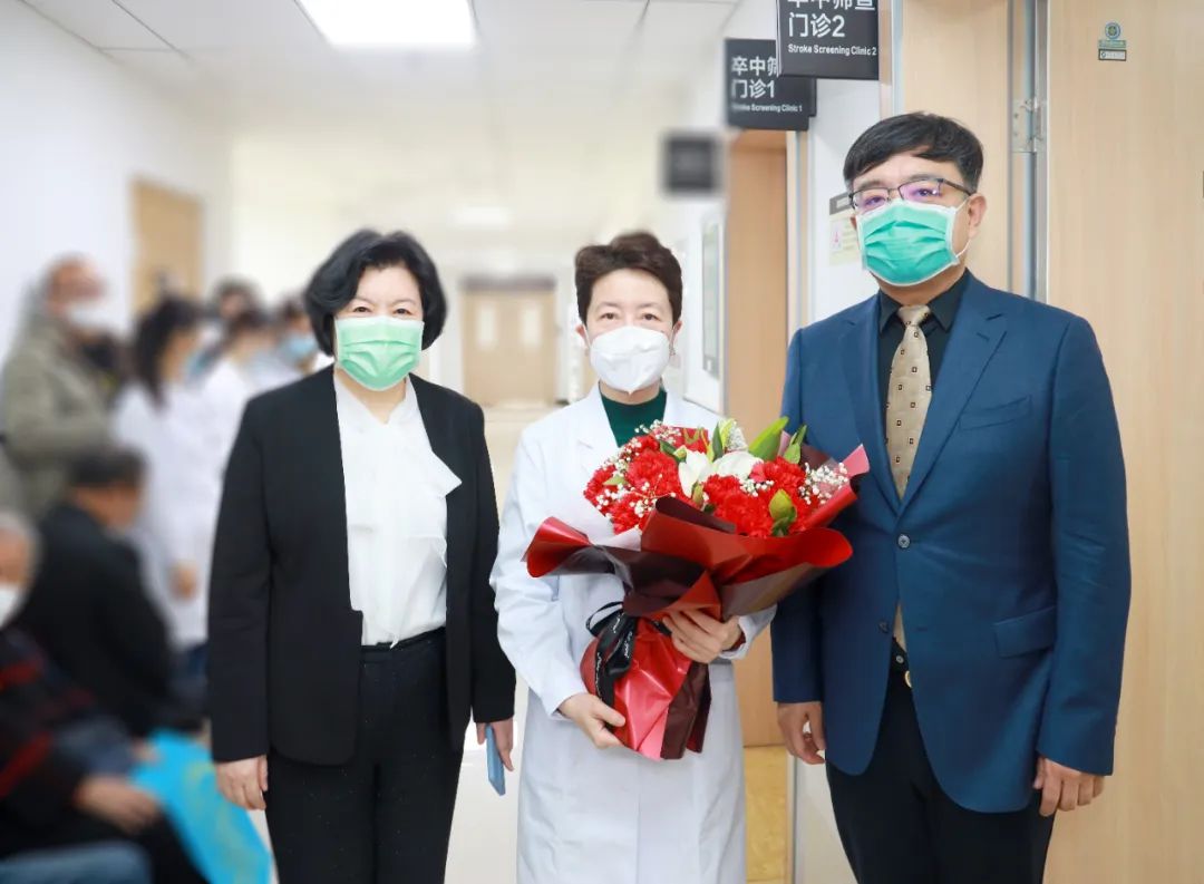 在建華院區(qū)門診,曹琴英書記與大家親切交談,感謝她們的奉獻和付出,并為北京大學(xué)人民醫(yī)院專家徐燕、陳燕文、辛玲、祖麗安以及醫(yī)院專家乞國艷、趙旭蘭、汪賀媛、邢燕軍、任巧華和外聘專家唐曉斌等送上節(jié)日的問候與祝福。