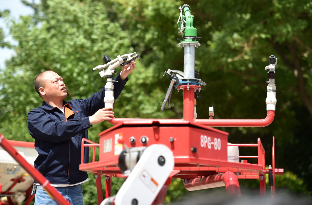 6月2日,在河北省石家莊市深澤縣一家農(nóng)機(jī)生產(chǎn)企業(yè),工人對農(nóng)業(yè)灌溉設(shè)備進(jìn)行檢查。 新華社發(fā)(張曉峰攝)
