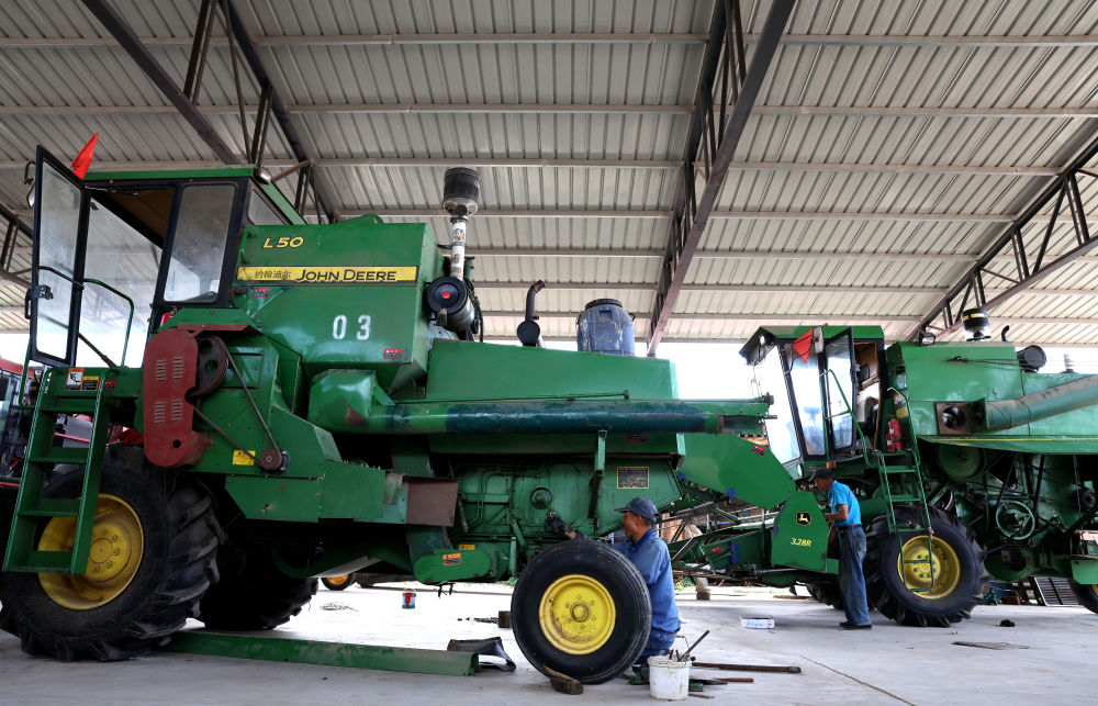 6月2日,在河北省晉州市周家莊鄉(xiāng),維修人員對即將“上崗”的農(nóng)機(jī)進(jìn)行檢查維修。新華社發(fā)(梁子棟攝)