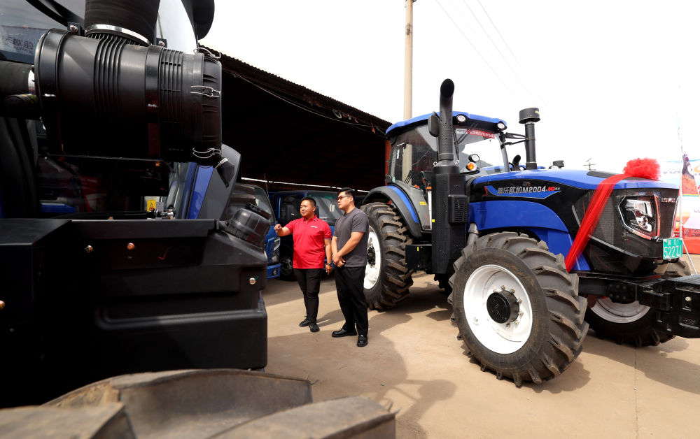 6月2日,在河北省晉州市一家農(nóng)機(jī)銷售公司,顧客選購農(nóng)用拖拉機(jī)。新華社發(fā)(梁子棟攝)