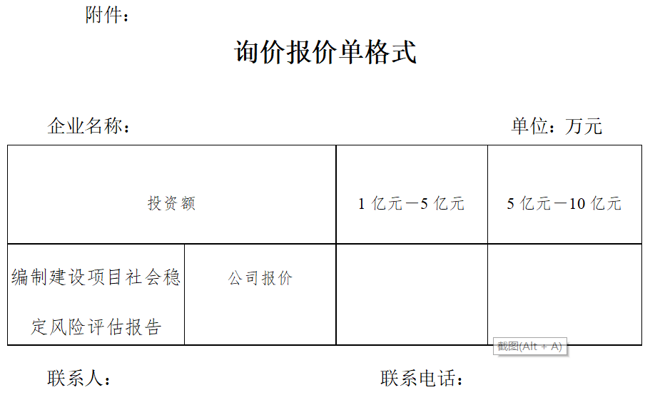 說明:本公告只為征集建設(shè)項(xiàng)目社會(huì)穩(wěn)定風(fēng)險(xiǎn)評(píng)估報(bào)告咨詢費(fèi)詢價(jià)使用。
